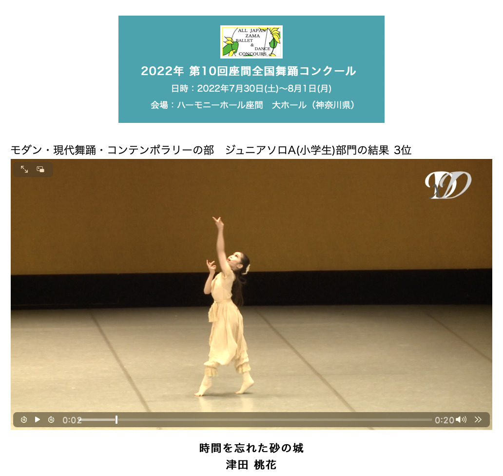 2022年座間舞踊コンクール第3位「時間を忘れた砂の城」津田桃花(←Click here!!)