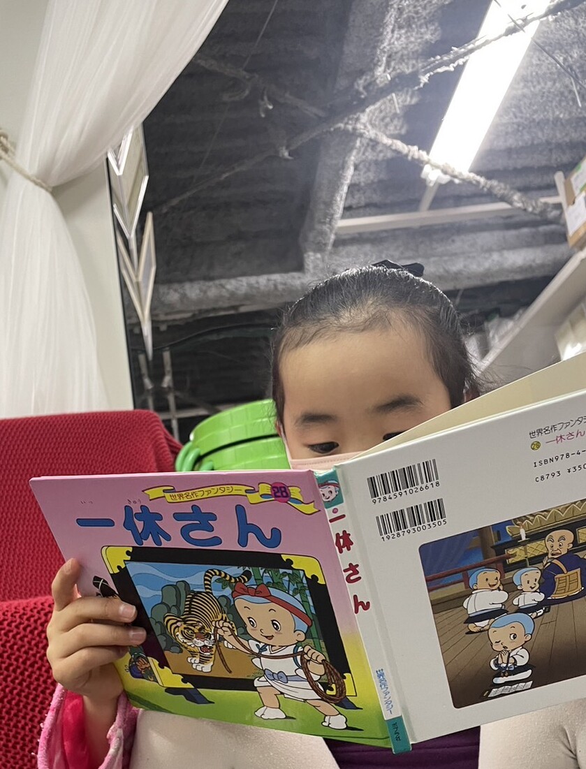 待ち時間の晴那。本が大好きなようで、待ち時間の間にUNOに置いてある本を何冊も読むそうです。こちらも可愛い図です😍