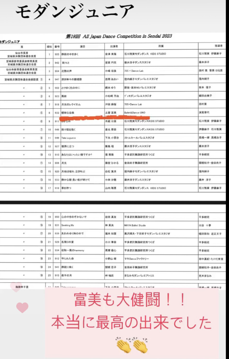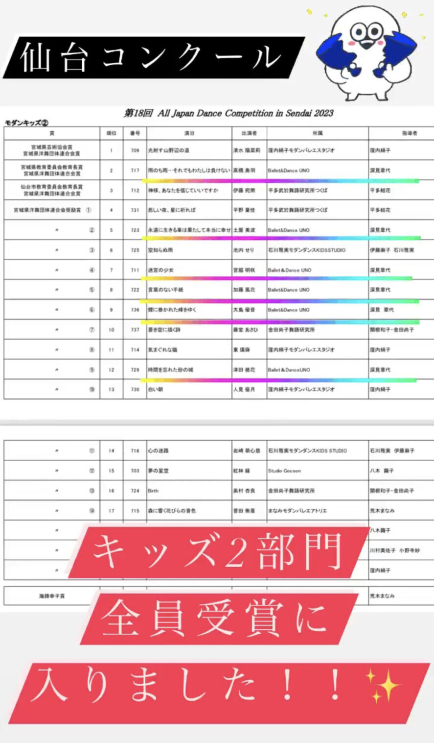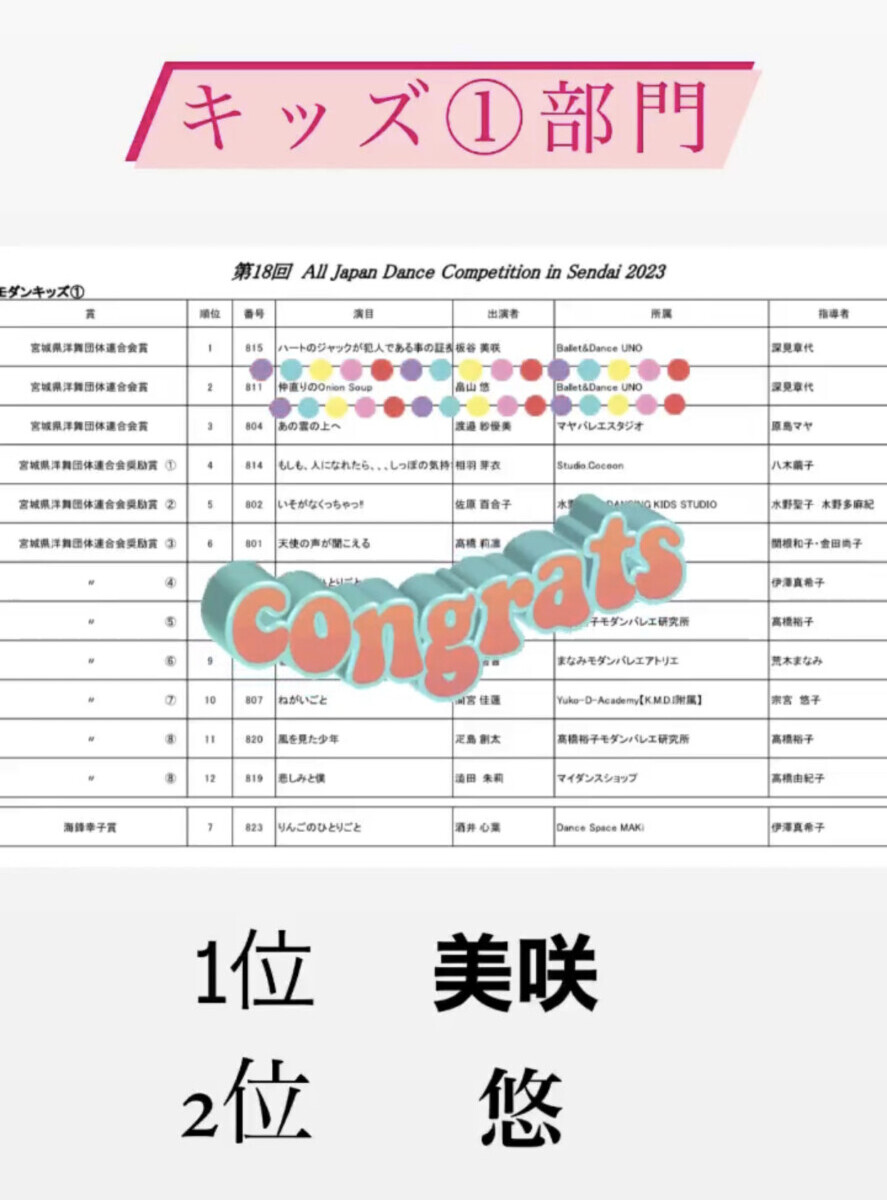 ダンスコンペティションイン仙台 コンテンポラリー ジュニア②部門 結果