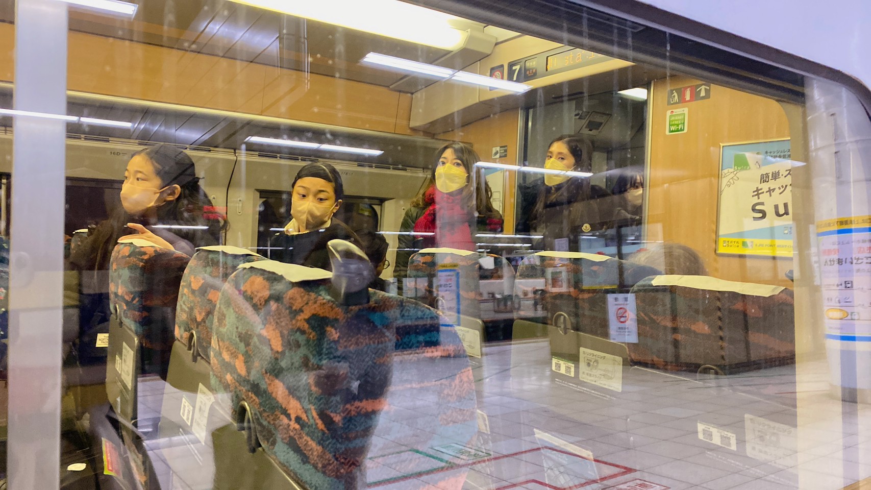 車内では寝てる子、おしゃべりしてる子それぞれに過ごし、章代先生となっちゃんはお仕事しながら向かいました🚄