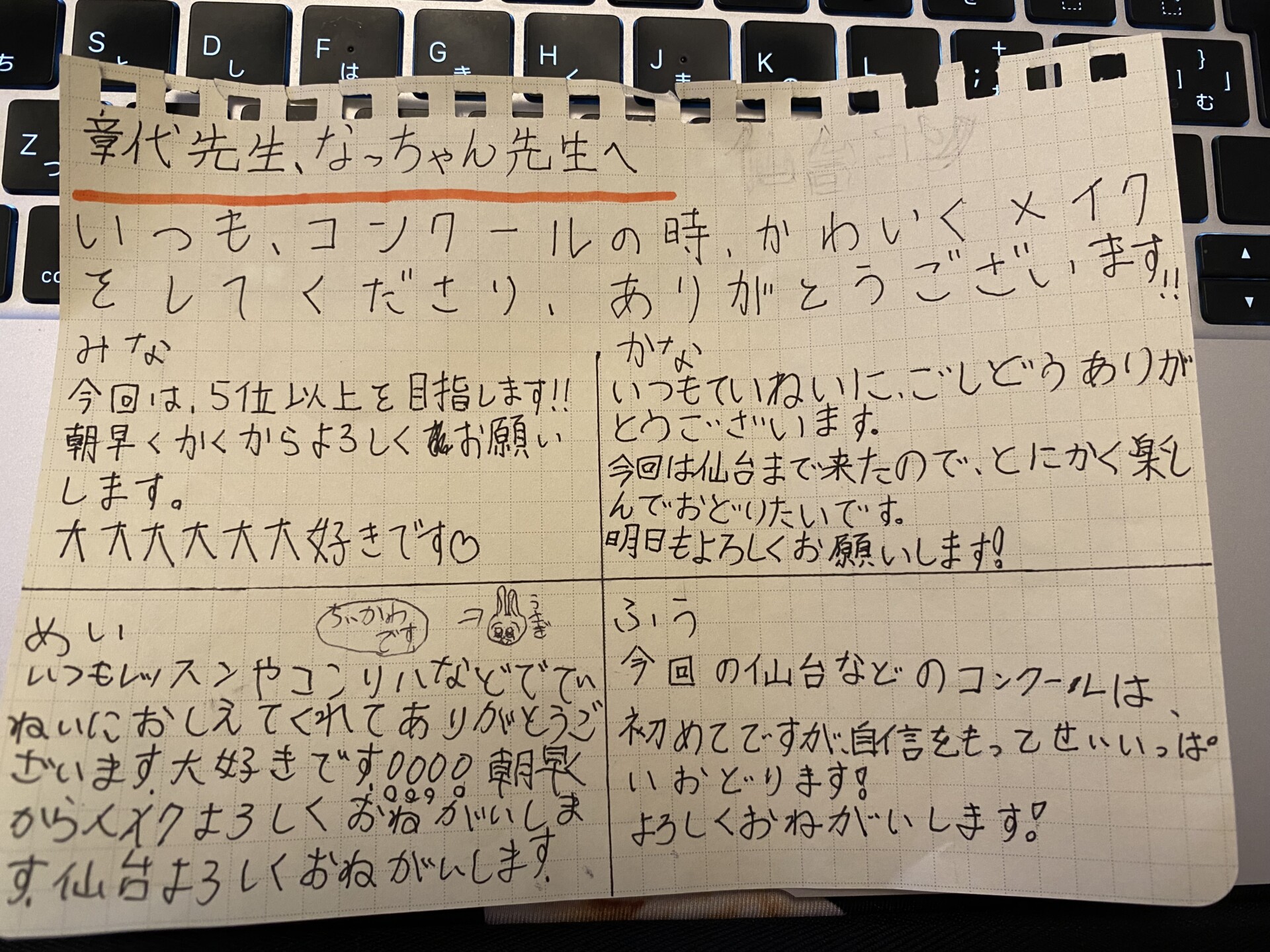 美咲1位、悠2位の結果にみんなで大喜び。